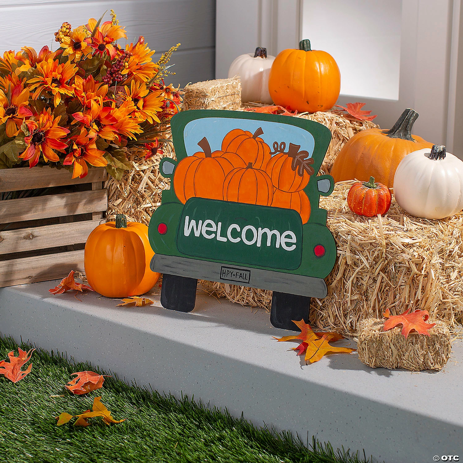 What a bountiful harvest! This truck has piles of pumpkins in the back and is ready for your decorating creativity. A fun do-it-yourself craft for home, the finished product can be added to your Harvest season home decor and brought out every year for display. This fall craft makes a great gift for crafters and is fun to complete! Wood. 15″ x 15″ ยฉ OTC