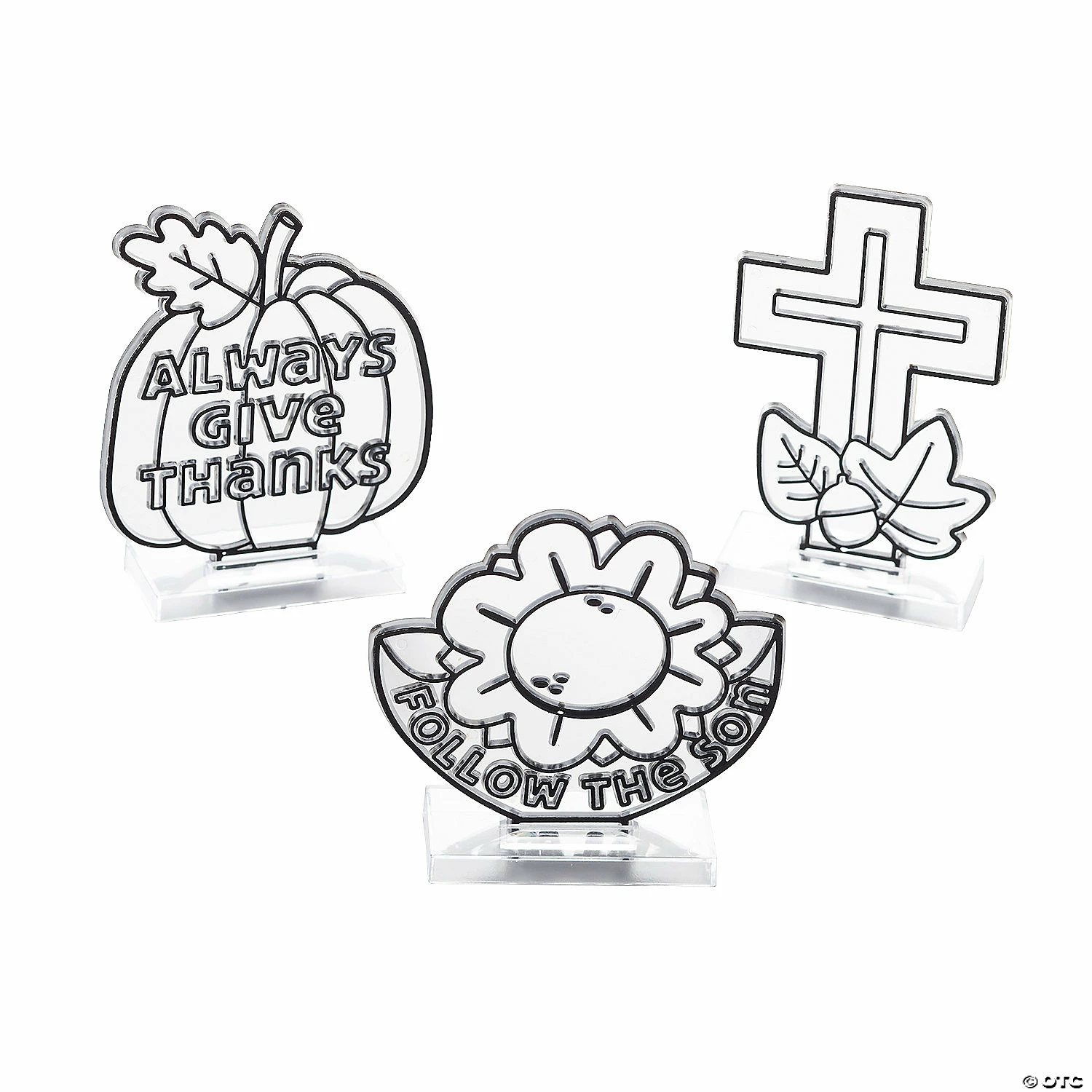 Celebrate the fall season with these cute suncatchers featuring faith-filled messages and images. Great as a Sunday School art project, these suncatchers have autumn themes and will also work well at a Harvest Party as activities for kids. These suncatchers are a great way to creatively celebrate fall while focusing on God. Plastic. 3 1/4″ – 4 1/2″ x 4″ – 5″ Suncatcher paint sold separately on this website. ยฉ OTC