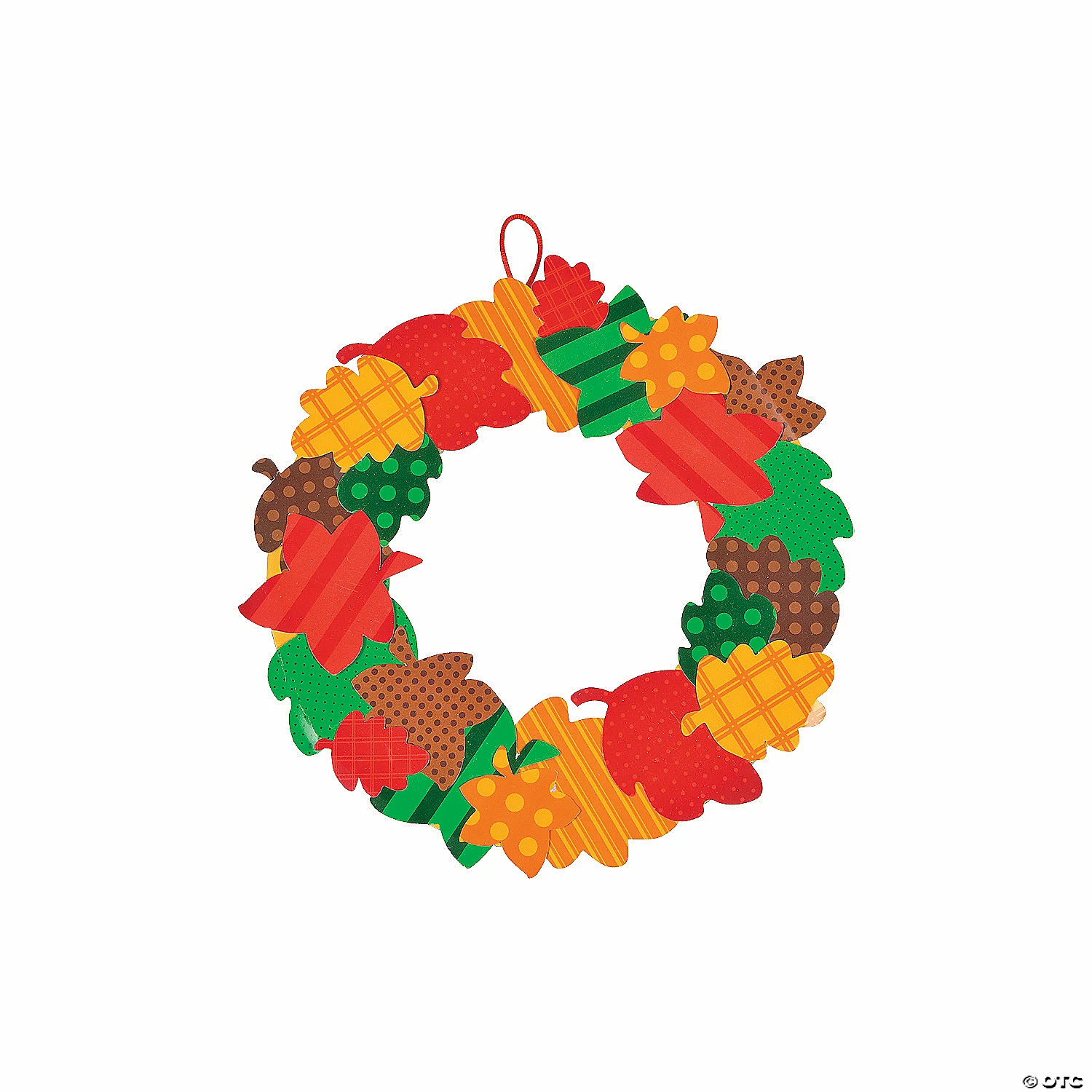 Just add your own glue and you’ll have a bright and beautiful autumn craft kit! This DIY wreath is a lovely way to brighten your fall dΓ©cor and makes a perfect addition to classroom supplies. Let your art class assemble the leaves in their own special patterns, glue them and let them dry! Includes paper leaves and satin cord for hanging. Cardboard. 8″ diam. Makes 12. Kits include instructions. Β© OTC Fall Leaves Paper Wreath Craft Kit Template