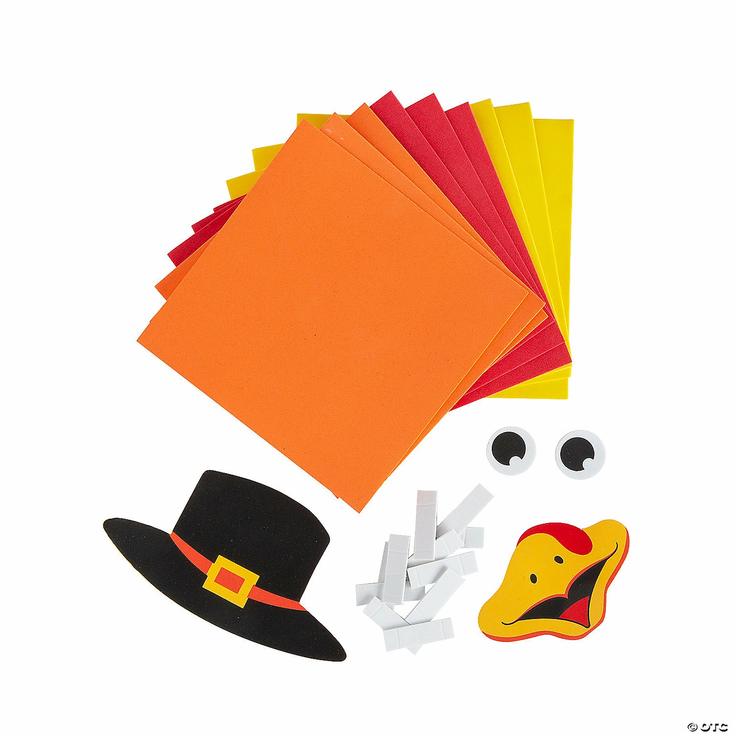 This pumpkin has quite the tail spread and a silly turkey head! Kids will have a blast decorating their pumpkin like a turkey and tracing their hands to make all its colorful feathers. This craft kit is a great activity for a Thanksgiving party and kids can take it home as a festive centerpiece or use it as a classroom decoration. Trace each childβs hand on the foam sheets and cut out the shapes. All other pieces are pre-cut. Includes self-adhesive foam pieces. 8 1/2″ x 8 3/4″ Makes 6. All craft kits are pre-packaged for individual use. Kits include instructions. Β© OTC
