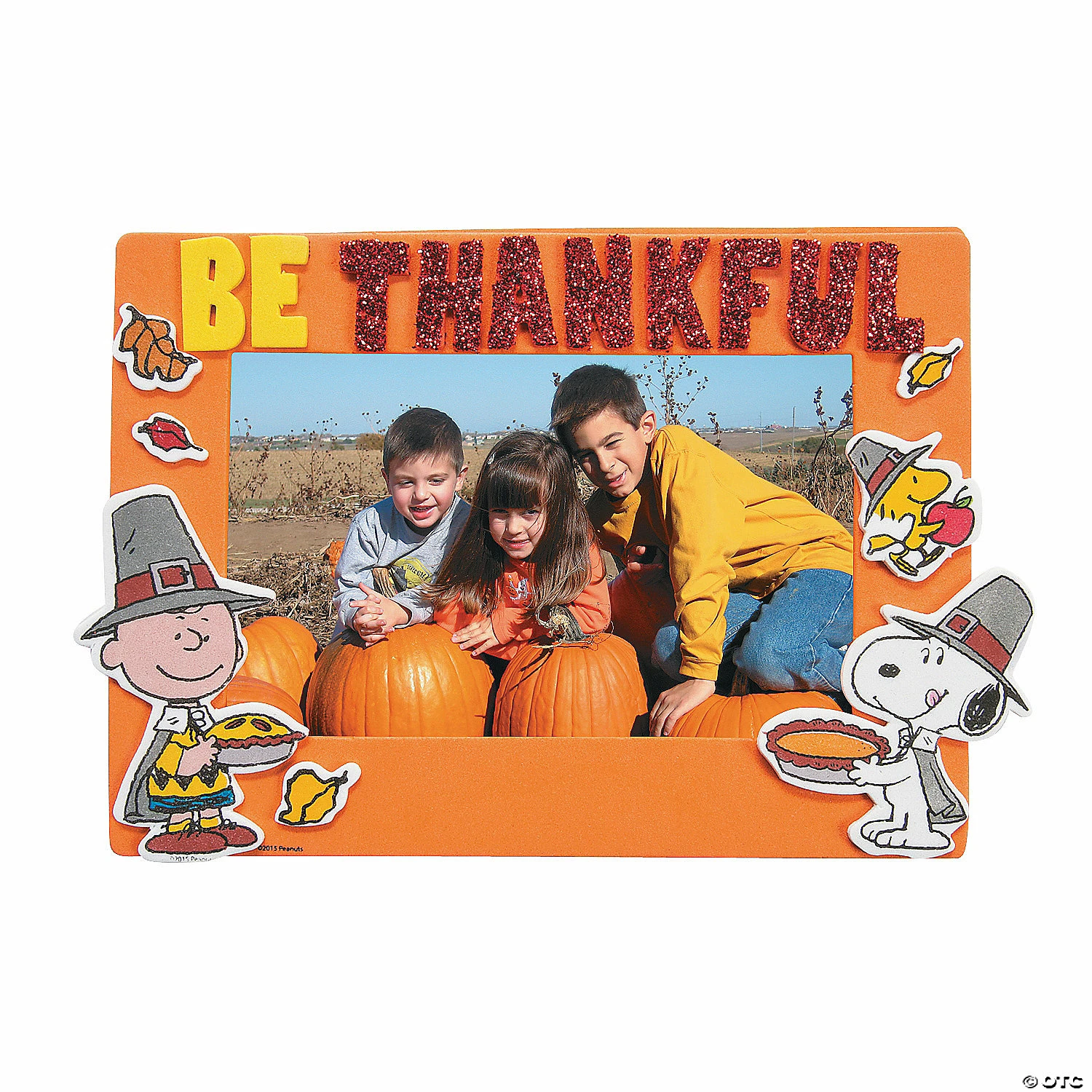 Get in the Holiday spirit with this Peanuts® Thanksgiving Picture Frame Magnet Craft Kit. Fun for all ages, use it at home, at school or at daycare! Includes self-adhesive foam pieces. 6 1/2″ x 4 3/4″ with a 4 3/4″ x 3″ photo space. Makes 12. All craft kit pieces are pre-packaged for individual use. Kits include instructions and extra pieces. Only at OTC / © 2015 Peanuts Worldwide LLC Peanuts® Thanksgiving Picture Frame Magnet Craft Kit Instructions