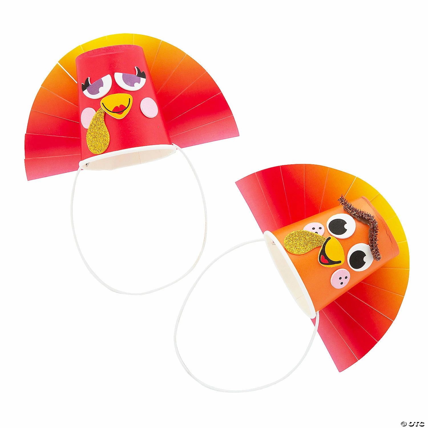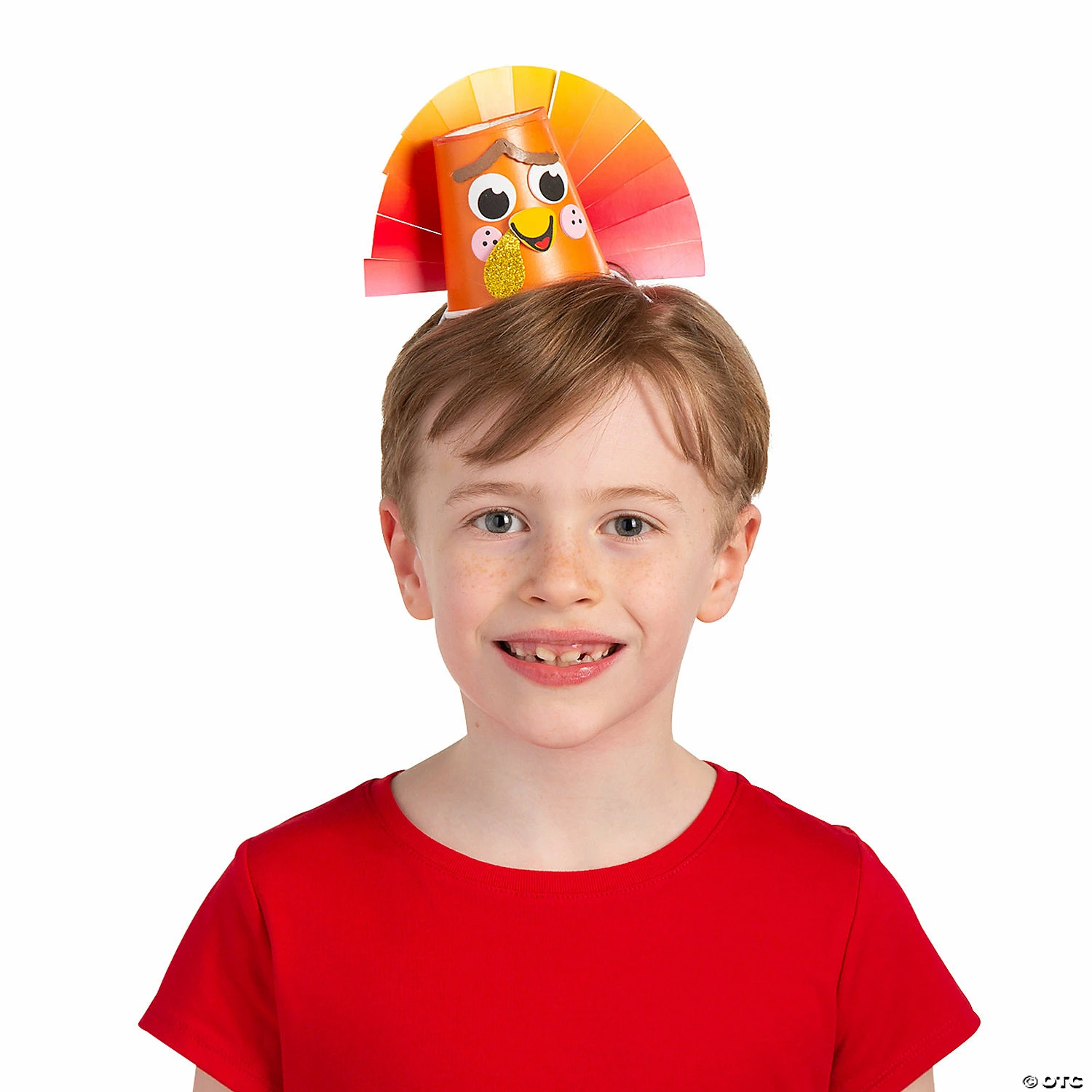 When it comes time to gobble gobble, these turkey hats will ensure that everyone at the Thanksgiving table has their head in the game. This Thanksgiving craft will give the kidsβ table a Turkey Day project to do while dinnerβs cooking. They can even write each guestβs name on their hat and use them as table place cards. Includes paper cups, self-adhesive foam pieces, chenille stems and elastic cording. 6 3/4″ x 4″ Makes 6.